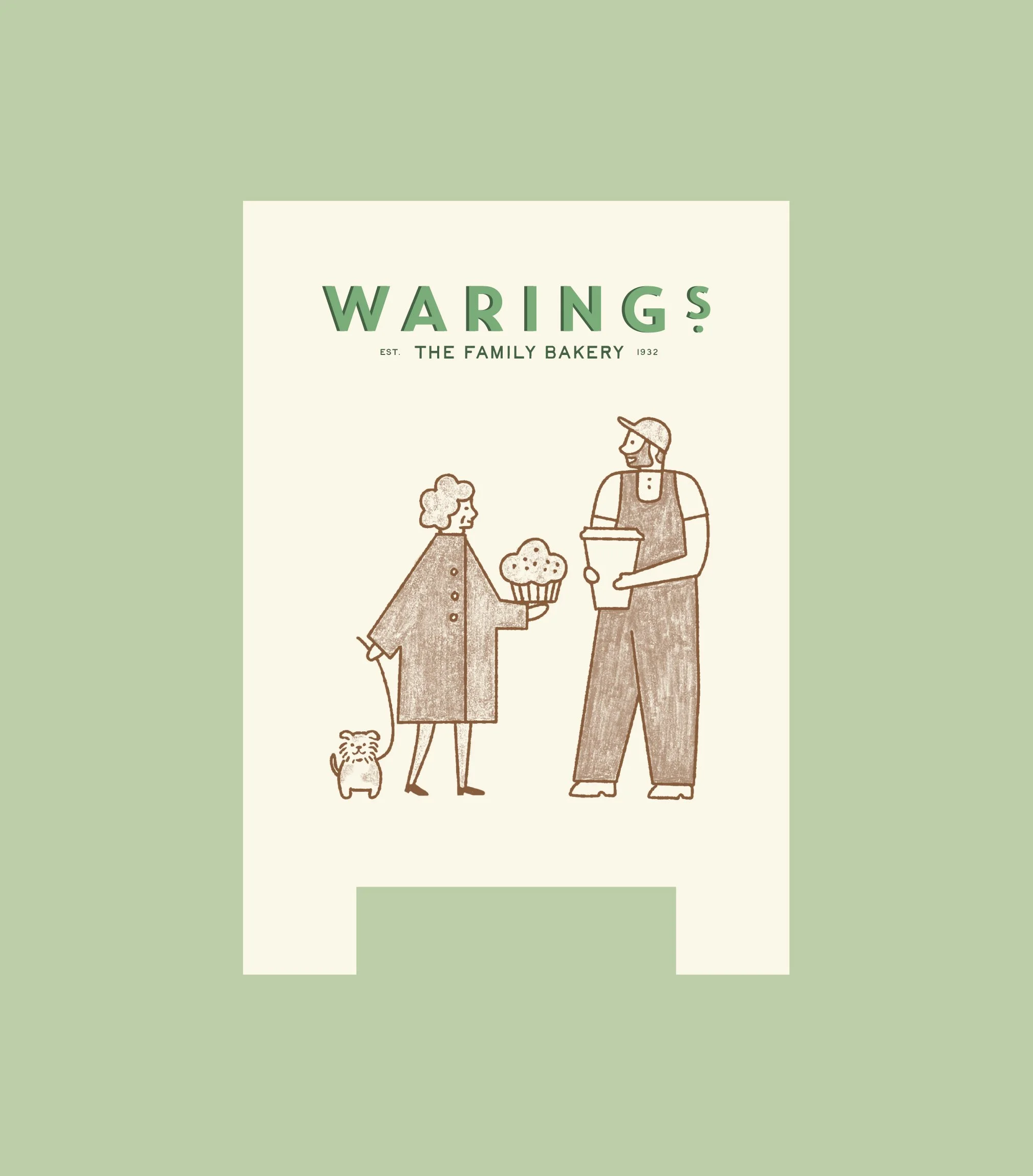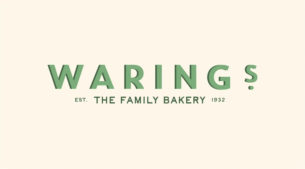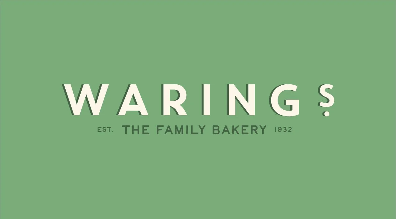 A warm, characterful brand identity that positions Waring’s as a timeless, family-friendly bakery for a new generation. With a fresh logo, inviting colour palette, and charming hand-drawn details, Waring’s is now perfectly placed to continue its legacy with renewed confidence and relevance.
